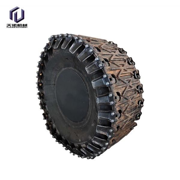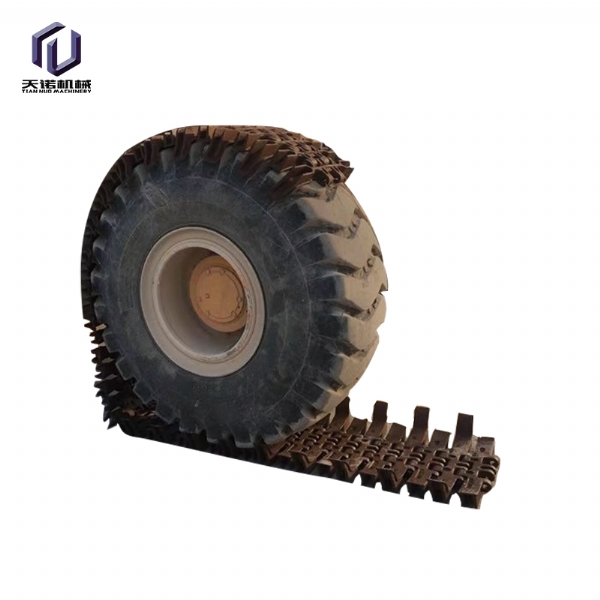 輪胎保護(hù)履帶是采用國內(nèi)外先進(jìn)生產(chǎn)工藝,利用優(yōu) 質(zhì) 合金鋼材料,經(jīng)精 密鑄造,高強(qiáng)度全自動(dòng)閃光對焊,編結(jié)構(gòu)合理,利用特殊焊接工藝焊接而成的一種輪胎設(shè)備。保護(hù)履帶耐磨性好,抗疲勞性強(qiáng),根據(jù)使用條件壽命達(dá)3000-8000小時(shí)。拆裝方便,省時(shí)省力,產(chǎn)品規(guī)格齊全,可與進(jìn)口裝載機(jī)所匹配,輪胎保護(hù)履帶,采用高科技耐磨材料制成其結(jié)構(gòu)新穎緊湊,性能穩(wěn)定,主要適用于礦山作業(yè)的裝載機(jī)、鏟車;其輪胎磨損快,使用壽命短,輪胎價(jià)格昂貴,使用成本高,將本產(chǎn)品嚴(yán)密的包裹在裝載機(jī)的輪胎上,可以有效的保護(hù)裝載機(jī)的輪胎,不被尖銳的石塊劃傷刺破,延長了輪胎的使用壽命,使用一條輪胎保護(hù)履帶,能節(jié)省十條輪胎以上的費(fèi)用還能提高裝載機(jī)的工作效率和安全是礦山作業(yè)的具備品。